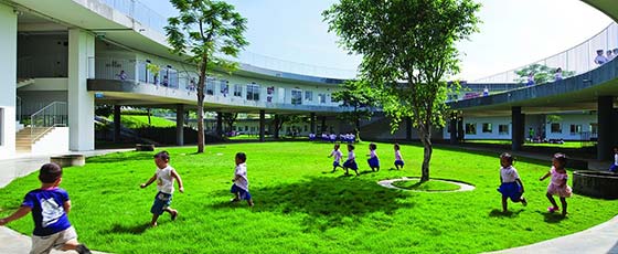 作为孩子教育的起点,幼儿园只有具备良好的建筑空间环境,才能促进儿童身心健康。建筑造型设计应满足幼儿生理与心理特征的要求,外形酷炫不是重点,而是通过设计手段,全面贴合儿童使用习惯,用儿童的视角设身处地悉心打造出符合美观和功能要求的人性化空间。