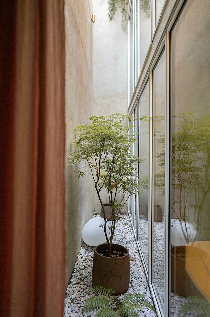 将一个前艺术家工作室扩建并改造成一套节能的四室住宅。受客户对冥想的兴趣启发,VATRAA通过景观、光线和材料探索了空间的精神特质。