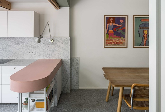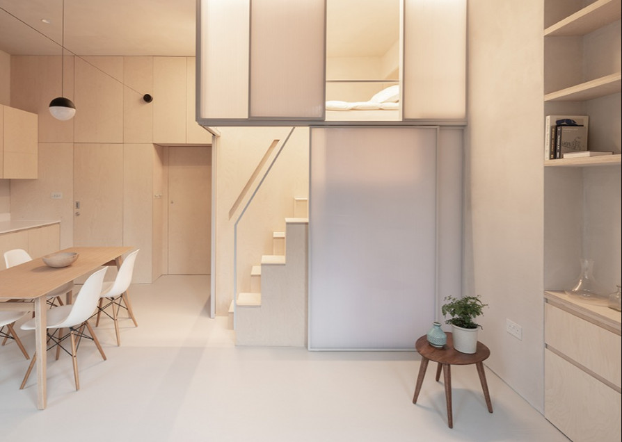 这套公寓翻修展示了在现有住宅基础上,进行微型居住空间改造的原型。占地面积有限,不过层高不低。
