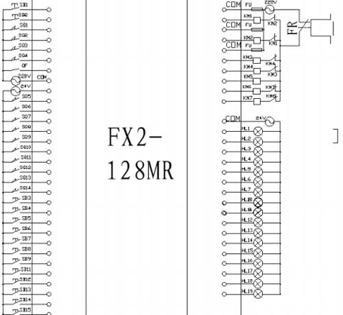 由此,估算为1000余条程序,而FX2---128MR编辑指令超过1000条,有2000步的程序内存,基本上满足了要求,PLC选型正确。