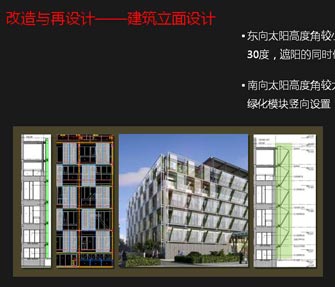 必要的现场检测与诊断:改造之前须进行结构、性能、环境、系统的检测诊断,用于确定功能、定位、设计的依据;完善的功能和技术策划:改造之初须进行详细的功能策划,以放大改造的生命力,避免再改造的浪费;明确的绿色目标:——在改造之初即要有明确的绿色改造的目标,确定绿色技术任务书。 |