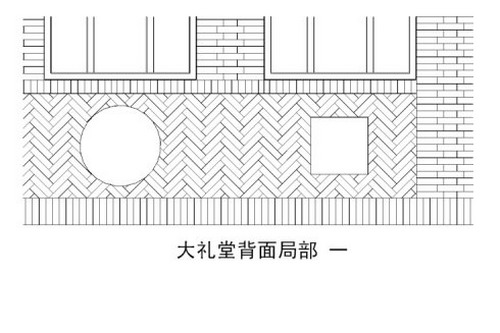 大礼堂的背面、老图书馆、新斋以及1号楼的红砖墙面,砖的砌筑方式和形成的图案有一定的渊源关系,分别见图5-9。