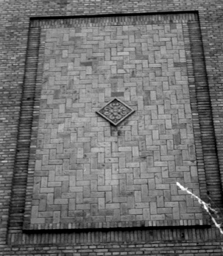 另外,在新图书馆的檐口下边有一排凸凹的砖饰,虽然较小,但是和前面所述的其它建筑上图案有内在有联系,让我们感受到一份亲切。
