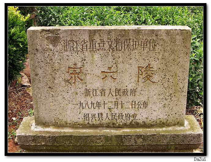 南宋六陵,浙江省重点文物保护单位(1989年12月12日公布), 位于绍兴市皋埠镇攒宫山,距绍兴市区18公里,有宋高宗永思陵、宋孝宗永阜陵、宋光宗永崇陵、宋宁宗永茂陵、宋理宗永穆陵、宋度宗永绍陵等南宋六帝陵寝,故称宋六陵。此外,还有北宋徽宗陵、宋哲宗后陵、宋徽宗后陵、宋高宗后陵。占地2.25平方公里,为江南最大的皇陵区。每座陵寝均设上下宫,功能齐备,结构完善。
