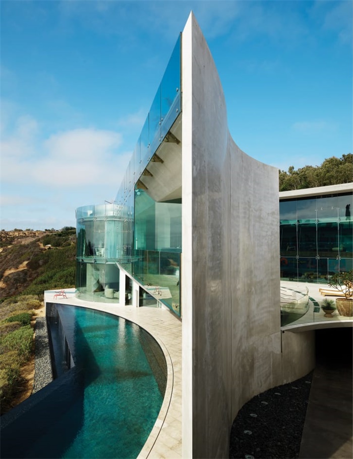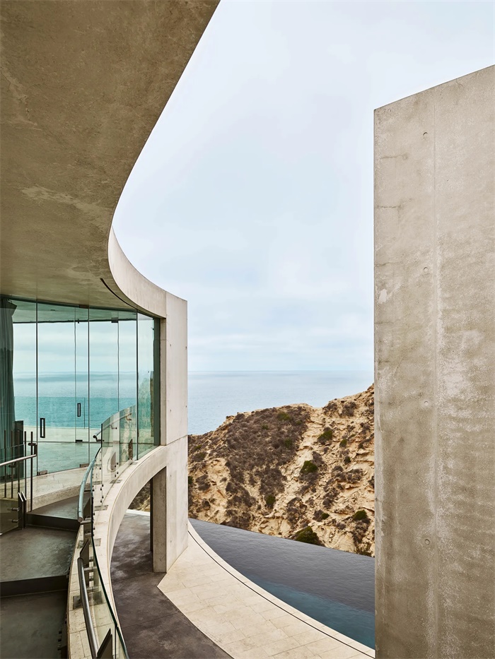 玻璃和混凝土外墙极薄的边缘勾勒剃刀般的锋芒。顶层露台是360度俯瞰无边太平洋或是仰望浩瀚的星空的最佳地点。