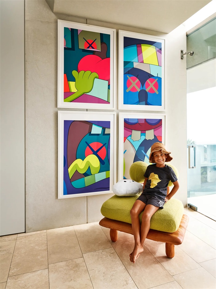 这里是另一个会客区,客厅中的几张大沙发,都是邓斯特从跳蚤市场淘来的,她喜欢这种不完美。