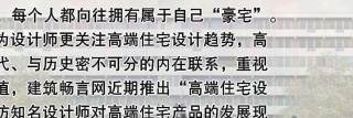 从建筑史上可以发现,第一代的建筑大师赖特,后面的几个建筑师,他们本身就是因为设计豪宅而崛起的,而获得了相当的名望以后逐渐才拥有其他发挥的机会。所以豪宅对于建筑师而言是一个跃登龙门的一个机会。高端住宅本身是一个不可复制的、定制的特性,才让这些设计师有更多的发挥余地。 |