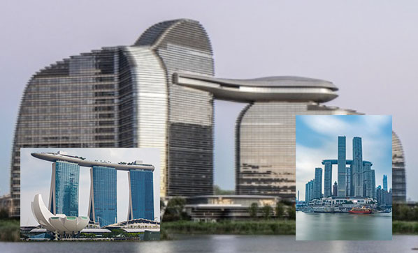 连廊设计,莫名想起了新加坡滨海湾金沙酒店,或重庆来福士。