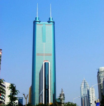 地王大厦,正式名称为信兴广场,是一座摩天大楼。因信兴广场所占土地当年拍卖拍得深圳土地交易最高价格,被称为“地王”,因此公众称之为地王大厦。大厦高69层,总高度383.95米,实高324.8米,建成时是亚洲第一高楼,现在是深圳第一高楼,也是全国第一个钢结构高层建筑,位居目前世界十大建筑之列。大楼于1996年完工。 主题性观光项目"深港之窗",就坐落在巍峨挺拔的地王大厦顶层,是亚洲第一个高层主题性观光游览项目。在此可以俯览深圳市容,远眺香港市容。
