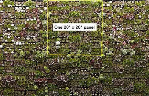每个板块大小为20英寸 x 20英寸,上面有倾斜的栽培单元,能种植植物。每个板块上有45个栽培单元,因此植物花卉的搭配就随你自己喜欢。首先将板块平放几个月,让植物把根扎牢,然后再垂直挂在墙壁上。植物自然需要浇水,你只需要一根花园浇水用的橡胶软管,然后固定在板块的内置浇水线上就能达到自动浇水的目的。