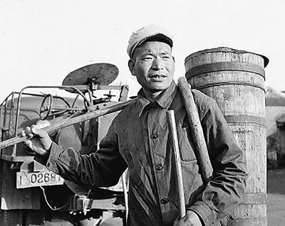 时传祥,是一位“宁肯一人臭,换来万户香”的掏粪工人,山东省齐河人,中共党员,曾在北京市崇文区清洁队工作。时传祥出生在一个贫苦农民家庭。他14岁逃荒流落到北京城郊,受生活所迫当了掏粪工。他用一颗朴实的心记住了一个通俗的道理:掏粪也是社会主义建设事业的一部分。他把掏粪当成十分光荣的劳动,以身作则,以苦为乐,不分分内分外,任劳任怨,满腔热情,全心全意为人民服务。