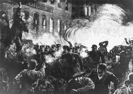 此项活动由非政府国际工人联合会组织,活动的中心在芝加哥,商人和政府对这次活动愈来愈表现出的革命性感到恐惧,当地商界首脑要求增加警察和军队的数量。芝加哥商业俱乐部购买了2000美元的枪支用于警戒对付这次罢工,5月1日这次游行活动得到了芝加哥纺织工人、鞋工人、房屋装修工人很大的支持,5月3日,警察开始向罢工的人群开火,打死打伤四人,一些非政府人士号召第二天在广场集会严重抗议政府的暴力镇压。