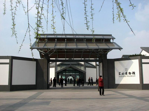 苏州博物馆是中国地方历史艺术性博物馆。位于江苏省苏州市东北街。1960年建立,2006年10月建成新馆,设计者为著名的建筑设计大师贝聿铭。馆址为太平天国忠王李秀成王府遗址。面积8000多平方米,分东、西、中3路,中路立体建筑为殿堂型式,梁坊满饰苏式彩绘,入口处侧门,有文征明手植紫藤,内部东侧有太平天国古典舞台等,是全国重点文物保护单位。