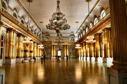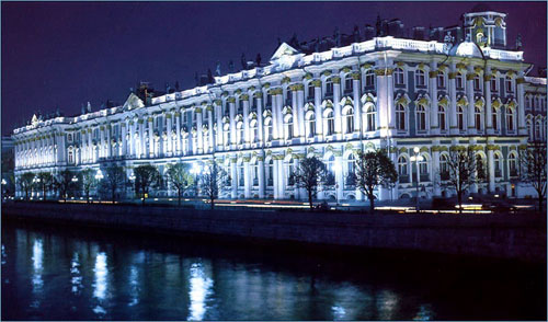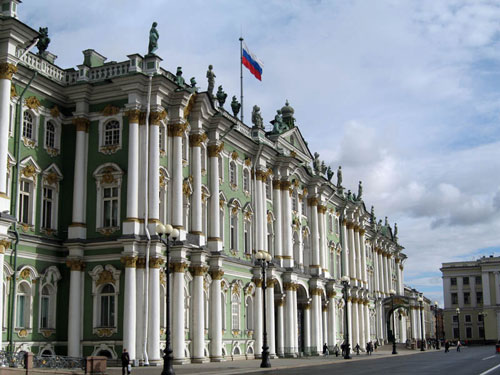 皇宫又叫冬宫,位于圣彼得堡市中心的涅瓦河畔。虽说艾尔米塔什博物馆是由5座大厦组成的庞大的建筑群,但小艾尔米塔什、大艾尔米塔什、新艾尔米塔什和艾尔米塔什剧院不过是围绕皇宫建起的“配殿”,冬宫始终是博物馆的灵魂和象征。