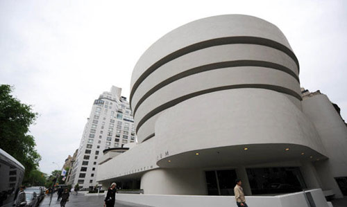 该博物馆保存了所罗门·R·古根海姆有现代艺术收藏品,许多展品由金属杆悬挂着,看起来似浮在空中。按照传统,博物馆在沿大厅四周的墙上展览艺术作品。但古根海姆打破了传统的惯例。