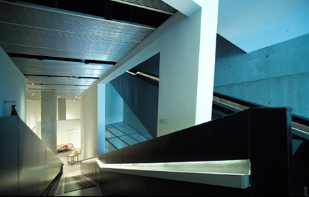 拼图玩具:与“城市地毯”格局相对比,“拼图玩具”有着磨光的波状表面,各陈列室看起来象由一块块独立砼块雕刻而成,悬浮在门厅上方。各展区的尺寸及外形各异,以满足当代艺术的各种规模及材质的需要。在建筑内,通道循环系统内,你无法透视陈列室内景。楼梯坡道沿建筑后部狭窄的一带成之字形曲折向上,同时,各陈列室宛如三维拼图玩具般相互联动,虚虚实实,趣味盎然。