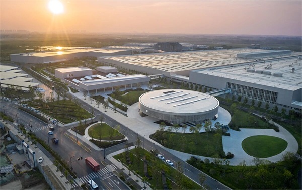 作为项目点睛之笔,投资1.75亿元的蔚来中心(NIO House 昵称“牛屋”)由丹麦SHL建筑事务所设计,外形像椭圆飞碟,优雅地坐落在园区入口。建筑打通了“台前”与“幕后”的任督二脉——访客不仅能喝着咖啡看车,还能透过连廊,直接看到蔚来第二先进制造基地里汽车诞生的全过程,可谓是无缝连接“逛街”和“探厂”,把工业旅游玩出了新高度。