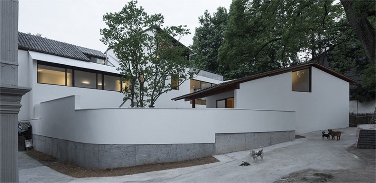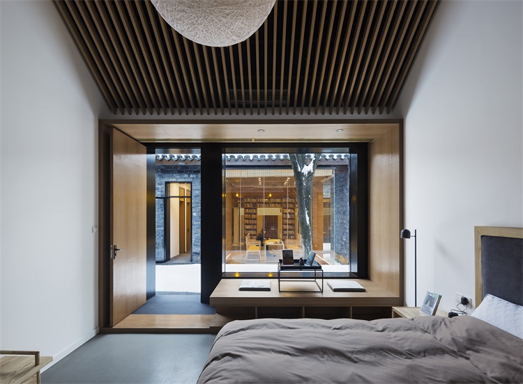 老宅改造是更新计划的重点所在。设计最大限度的保留了这栋村中少有的古老宅院的外在形态,希望能强调地域特征和文化传承的重要性。同时对建筑内部进行颠覆性的功能置换和空间重构。包裹着天井的书架和一个面向庭院的玻璃茶亭植入其中,它们不但成为了空间活动的中心,更是打破了室内外的界限,为原本昏暗老宅引入了阳光和自然,使其成为了村庄邻里交流和文化交融的新场所。