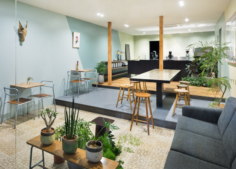 日本Torafu Architects建筑事务所为Snow Picnic进行了店铺的室内设计。Torafu Architects利用色彩与材质不同的地板把店铺划分为休息区、进餐区及制作区三个部分,在色彩上相互连接的墙壁以及随处可见的绿植、壁画,负责将三个区域融为一体增强整体感。家具的选配例如布艺沙发,木质的凳子看似随意装点的绿植让这里很有“家”的感觉。
