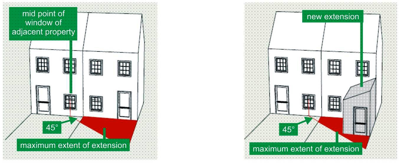 英国“45度规则”扩建要求图示