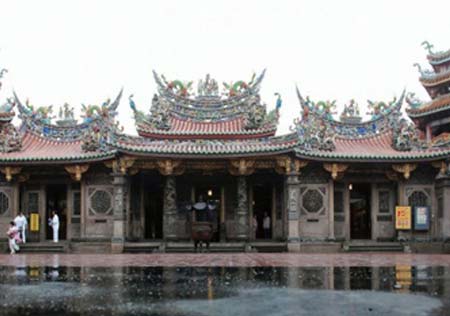 位于台南市的南鲲鯓代天府,又称"五府王爷庙",整个庙宇由代天府、中军府和城隍衙三部分组成。全庙采用大陆运来的石材所建,庙内雕梁画栋,富丽堂皇,被定为台湾省二级古迹。