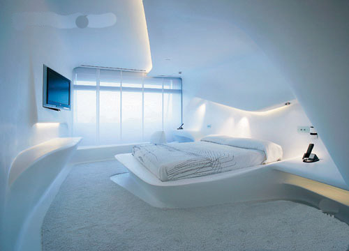 扎哈为马德里Hotel Puerta America而作的室内设计,由曲面构成。