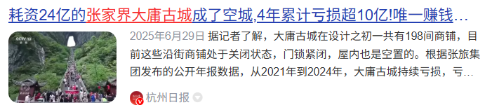 24亿投资的张家界大庸古城,维持惨淡经营,4年亏损10亿。