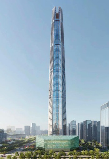 建筑高度597米,2008年9月启动,2015年9月主体封顶。