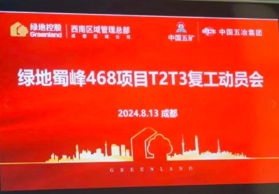 半年前,成都“绿地蜀峰468项目T2T3复工动员会”现场照流出,据称五冶集团接手该项目。