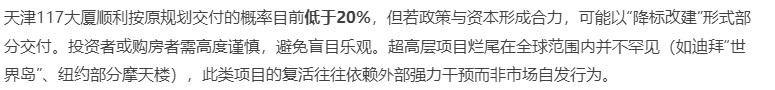 接下来,世界最高“烂尾楼”,400亿投资的天津117大厦/高银金融117大厦,也传来复工消息。