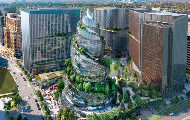 竹笋楼也不鲜见。2022年,亚马逊位于美国阿灵顿的HQ2建筑获准建造。大众对这座“笋子楼”先辈不大看好。