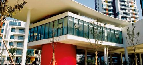开发项目的中心是一个巨大的半圆形广场,其中有社区中心、超市、小型百货商店和娱乐室,居民可以在这里打麻将、下棋。一个社区组织希望在广场上举办歌唱比赛、社区舞蹈大赛等活动。这个住宅区的其他特点还包括:大型的地下停车场和销售蔬菜和海鲜的蔬菜水果市场。