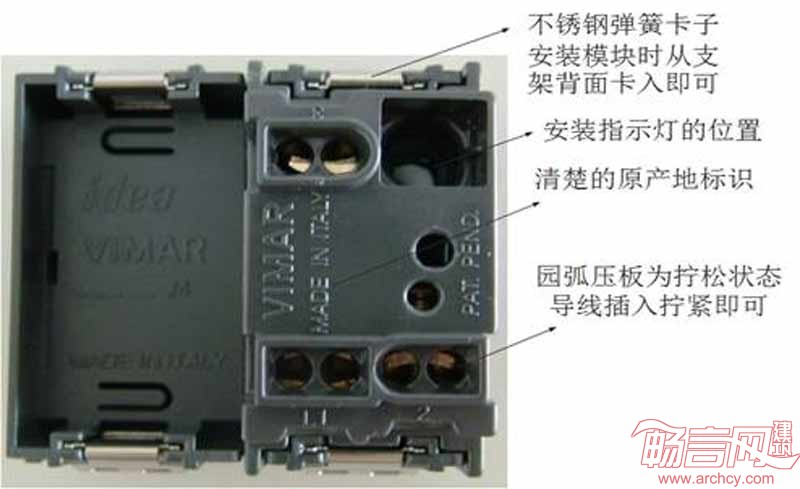 开关插座:开关使用的纯银触电保证了产品的安全性;所有铜件均采用一次压铸成型的工艺,极大程度的保证了产品的使用寿命;所有塑料组件均采用高档工程塑料材质,耐火阻燃。所有产品均满足或高于国标要求,伟迈公司承诺产品正常使用年限在12年以上。