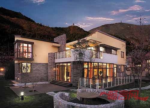 因为有一种东西文化的冲撞,在做这个别墅设计的时候是我无法界定。我到底用中国手法设计还是用西方手法设计,我本人已经混在一起了,很难说清楚。对于这个作品,有时候当我走到山坡上,可能我不自觉的会想到西班牙山区里面建筑的影响。还有在意大利北部的山麓里面,也很多的山城。还有在地中海沿岸,用地比较紧张,人们都在山坡上居住。像这种规划形态不自觉的在这里面有一种反映。但是我认为我还是一个中国建筑师,更多是中国人对于居住的理解,对于院落的理解,对于环境的理解,另外是现代生活和回归自然的生活方向的一种融合,所以这是很多事情综合的设计结果。