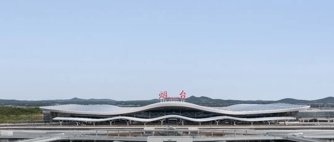 2024年6月28日,山东烟台蓬莱国际机场T2航站楼正式投入使用。至此,烟台机场航站楼总面积达到27万平方米,停机坪面积达到90万平方米,廊桥53部、机位80个,可满足年旅客吞吐量2300万人次、货邮吞吐量20万吨的保障需求。T2航站楼造型磅礴大气,银色金属主屋面连绵起伏,完美诠释了烟台独特的山海文化。