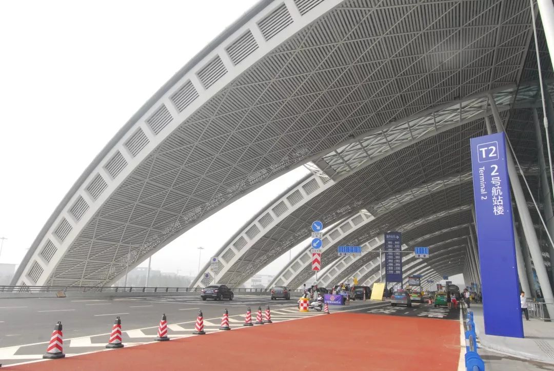 2012年8月9日,成都双流国际机场第二航站楼(T2)正式投入运行。成都双流机场T2航站楼年旅客吞吐量3000万人次,面积29.6万平方米。航站楼由一片片大小不一的“竹叶”铺成,巨大的中央处理大厅以32榀巨大的空间斜放拱及金属与玻璃材料相间的屋顶构成,形成16片“竹叶”造型。延伸到车道上空的“竹叶”拱廊又可充当车道及人行道的雨蓬,整个航站楼显得轻盈、流畅、明亮、动感。