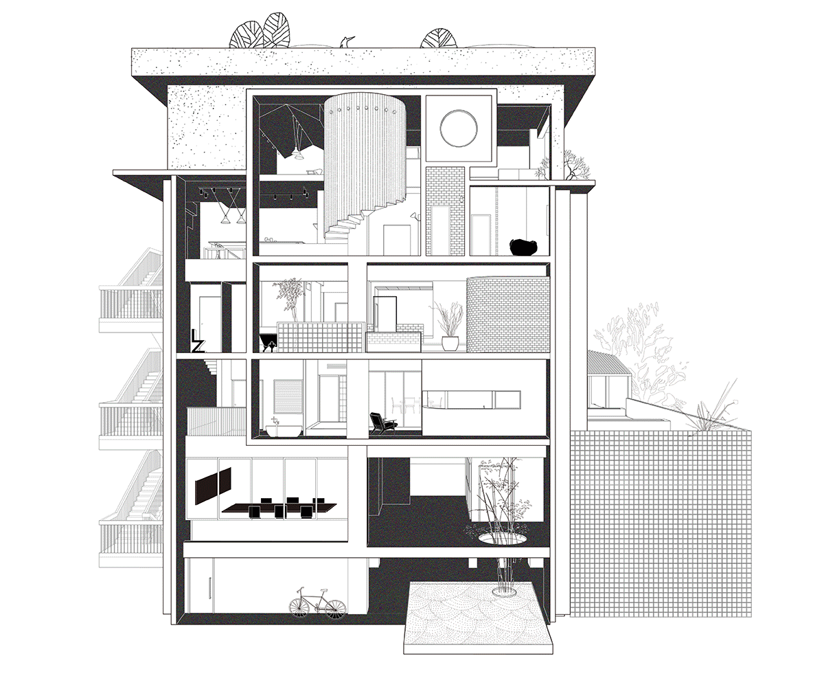 做这个项目之前,有段时间我们会经常组织一些建筑旅行,从中思考建筑到底应该怎样发展,建筑师是怎样成长的。衣食住行,其实建筑解决的是“住”这个问题。在这个过程里,我们发觉很多建筑大师传世的作品都是住宅,但现在国内很多先锋事务所发布的作品很少有住宅类别,这是很奇怪的现象。我们除了建筑事务所还有一个公益扉美术馆,圈子里面有很多搞艺术的朋友,很多时候工作室就是他们的家,他们很渴望找一个居住、工作和展览能结合的地方。国外旅行常常参观旧工厂或者战时遗留下来的建筑都被当地艺术家改建成工作室,我们就想找个这样的地方把想法落地。我们不能说很多人都是这种无界的生活方式,但肯定有一群人是这样,需求是确实存在的。