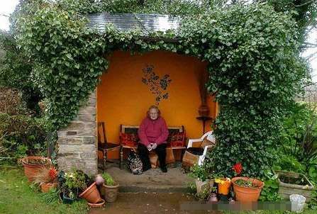 爬满绿色藤蔓的公交站,位于英格兰康沃尔