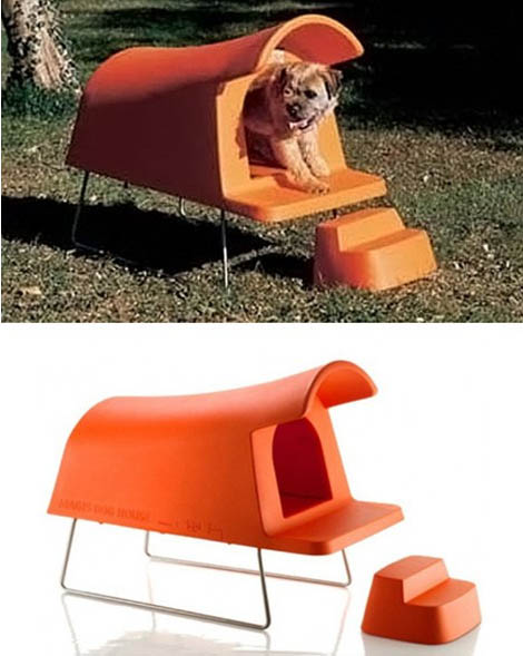 这是一个用聚乙烯制作的狗窝。它拥有两条不锈钢“腿”,门前还有一个小小的台阶。这是由Michael Young 专为Magis(一只狗)设计的。