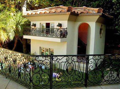 这个狗窝有两层,下面是起居室,上面是卧室,和一个橱窗,用来存放专为小狗购买的小玩意儿。狗窝内部设计与帕丽斯希尔顿她本人房子的设计一模一样,都是粉红色的,并且也有诸如空调暖气等设备。它的价格是325000美元。