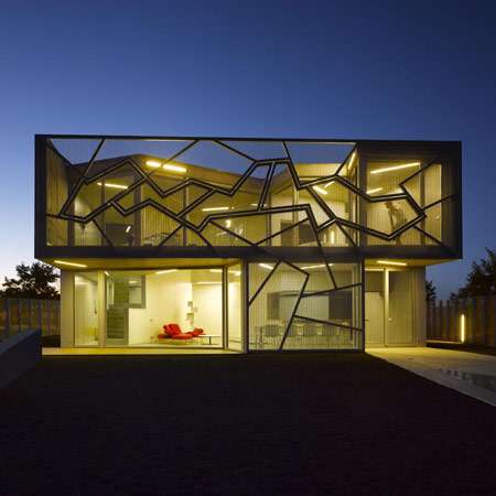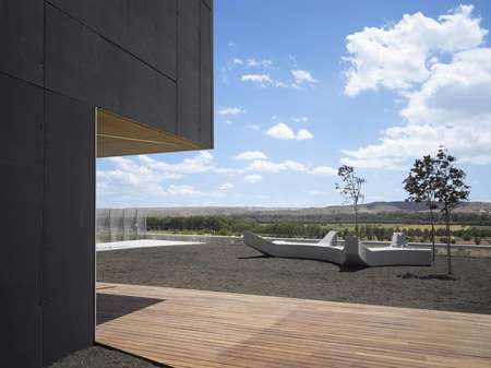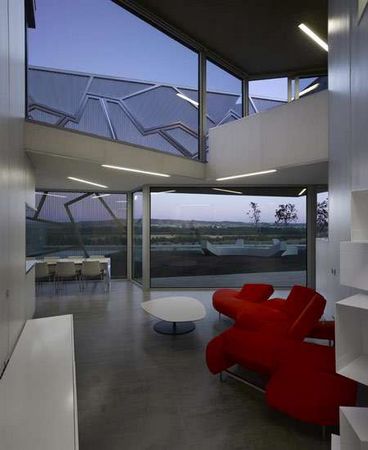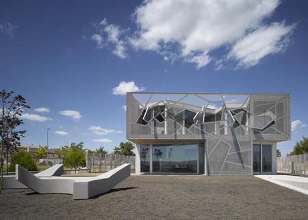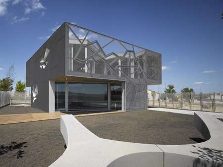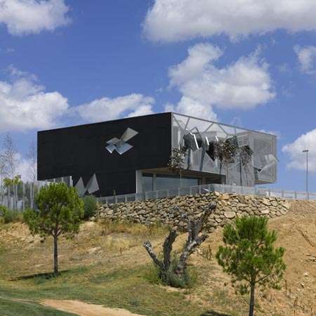 该两层建筑叫做Casa Zafra,由NO.MAD Arquitecos 的Eduardo Arroyo 设计,从钩状几何图案得到灵感,建筑的正面是个网线结构的墙壁,它的作用是保护员工免受可能飞来的高尔夫球袭击。