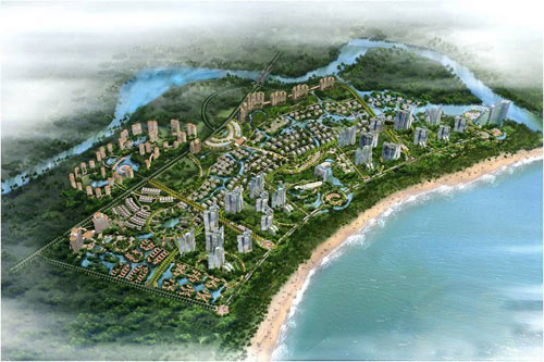 琼海市博鳌金湾项目位于海南省琼海市博鳌海滨旅游区北部,滨海大道东侧、西侧,占地1,800,009平米, 总建筑面积1,700,000平米, 包括:1幢精装修的五星级酒店(客户数未定);14幢29层高的海景公寓, 设有2层高的地下车库, 提供超过1000个车位;1幢2层高的精装修的部分钢结构会所。部分建筑材料及设备包括:将安装小型空调 (海景公寓) 、外墙使用涂料 (海景公寓) 、玻璃幕墙、将安装数台直梯。