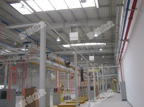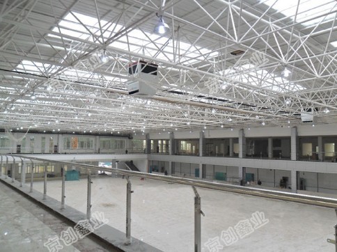 高大空间专用空调吊装在屋顶,通过设备内的冷、热交换器实现对空气的制冷或加热,然后利用高效的空气布送装置将冷、热空气由上而下均匀的分布到空间各处, 消除室内不良温度层。采用吸风式轴流风机,制热工况下有效回收散聚在屋顶的热量,使通过屋顶的热量减少到最小限度,真正达到节能效果。高大空间专用空调热媒采用热水或蒸汽,冷媒为冷水,单台覆盖面积为500到1000平米。设备控制全部由计算机和控制系统自动完成,利用无线通讯技术可实现数据采集、单机单控、恒温、定时等功能。
