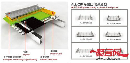 铝镁锰金属屋面系列为客户提供了丰富的色彩选择和更高的耐久性,从而满足各种建筑设计的要求。广泛应用于机场航站楼、车站及大型交通枢纽、会议及展览中心、体育场馆、展示厅、大型公共娱乐设施、公共服务建筑、大型购物中心、商业设施、民用住宅等建筑屋面与墙面系统。