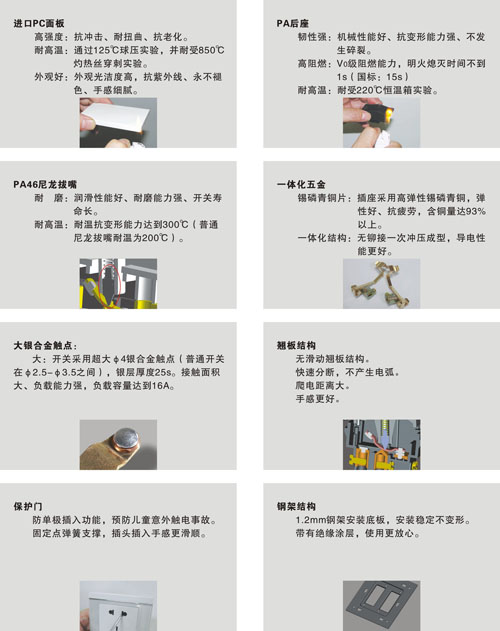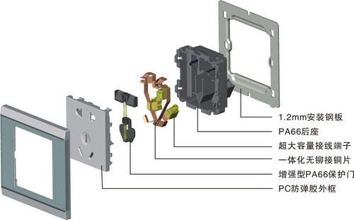 与传统塑料底板的开关相比,钢架开关在抗冲击、防变形、抗老化、阻燃等各方面得到了全国增强,不但使家用开关产品获得了更完善的安全保障,也为苛刻的工业用电环境提供了新选择。