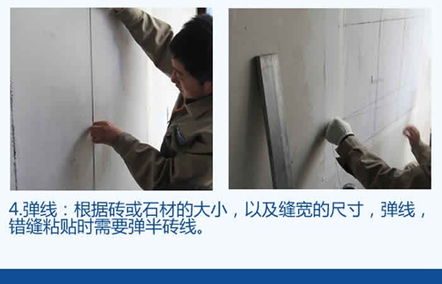 2、弹线分格:根据设计要求用墨线在墙体上弹出纵横向基准线和分格定位线。
