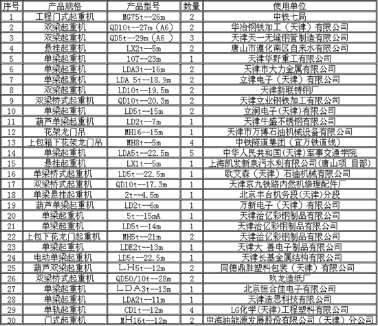 天津华瑞腾飞起重设备销售有限公司产品应用