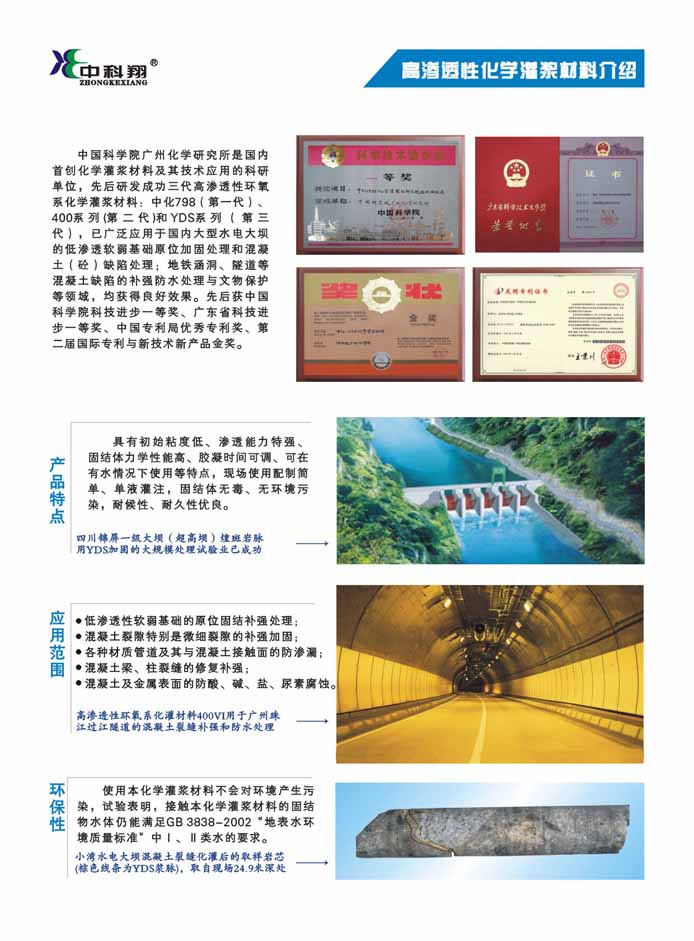 高渗透性化学灌浆材料
