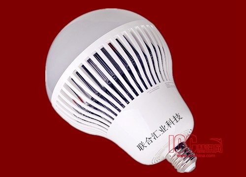 LED灯泡采用了现有的接口方式,即螺口E40,甚至为了符合人们的使用习惯模仿了白炽灯泡的外形。基于LED单向性的发光原理,设计人员在灯具结构上做了更改使得LED灯泡的配光曲线基本与白炽灯的点光源性趋同。