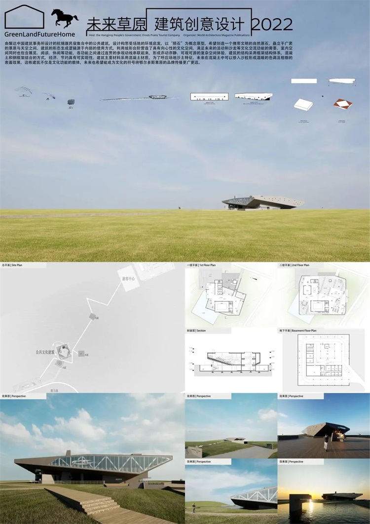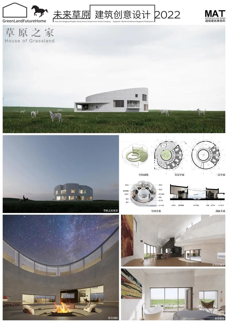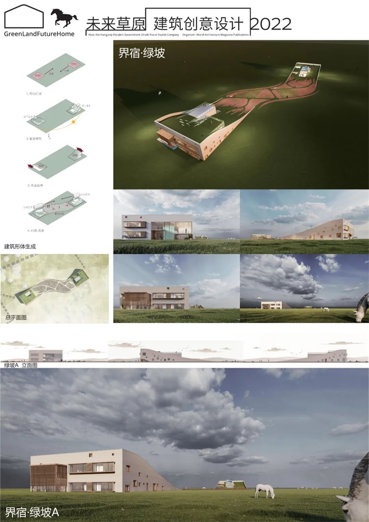 由杭锦旗人民政府、中共杭锦旗委宣传部联合主办,《世界建筑》杂志社组织的杭锦旗“未来草原”民宿创意设计工作营历时2个半月,终评会暨成果汇报会于2022年9月27日在鄂尔多斯杭锦旗锡尼镇成功举办。此次活动邀请同济大学建筑与城市规划学院教授、博导,中国建筑学会建筑策划与后评估分会副会长,上海市建筑学会副理事长李振宇;清华大学建筑学院副教授、《世界建筑》副主编青锋;宿集营造社创始人,杭州民宿行业协会执行会长,民宿集群概念倡导者夏雨清组成的专家评审团,杭锦旗委常委、宣传部部长、政府党组成员常海,旗委常委、政府副旗长丽艳,高级工程师、国家一级注册建筑师王焱,以及旗委宣传部、文旅局、自然资源局、锡尼镇、文旅公司负责人和鄂尔多斯草原旅游区执行董事余海忠等作为主办方代表就设计成果与专家评审团共同讨论。杭锦旗委常委、宣传部部长、政府党组成员常海代表主办方致辞,他表达了杭锦旗委、政府向各位设计师的辛勤付出致以感谢,此次活动的举办标志着双方合作进入了一个新的阶段,是实现杭锦旅游新业态创新发展的有利契机,同时也希望此次“未来草原”设计工作营的作品可以尽快落地实施,全力推动全旗旅游行业提质增效、助力乡村旅游产业振兴发展。评审团就各个方案的建筑形态、功能、运营方向等方面与建筑师们进行了深入交流,并给予点评。此次工作营期间的10个设计方案回归自然,以艺术与建筑语言,用自然的方式、融合的形态,探索生活空间与草原融合,重新诠释草原民宿建筑、探索未来草原生活形态,以牧旅融合的方式,引领新型度假生活方式。